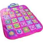 تحتوي على البساط على أنشودة لكل حرف على الحرف حيث يقوم البساط بسؤال الطفل أين ويضغط الطفل على الحرف الصحيحة